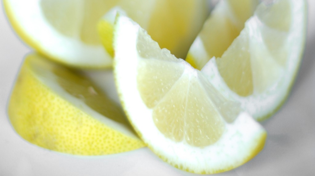 Leikkaa sitruuna puoliksi tai sentin levyisiksi lohkoiksi.